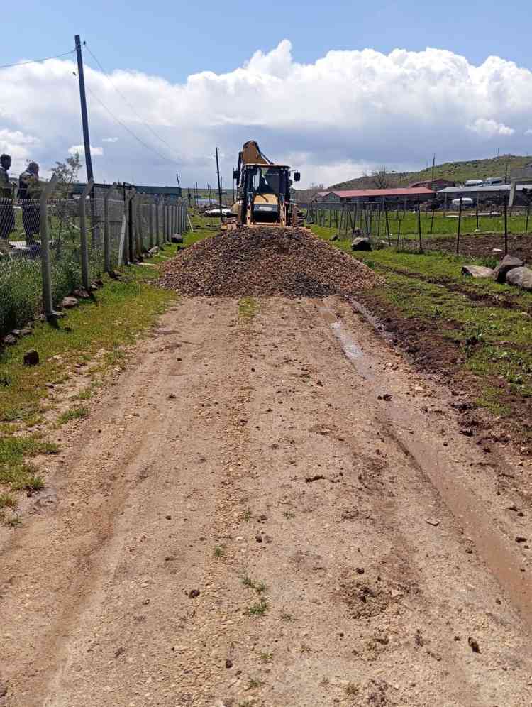 Yoğun yağışlar nedeniyle yollarda oluşan çukurların giderilmesi amacıyla yürütülen çalışmalarda, üst yapı malzemesi olarak mıcır serimi yapılarak yol tesviyesi sağlandı.