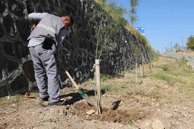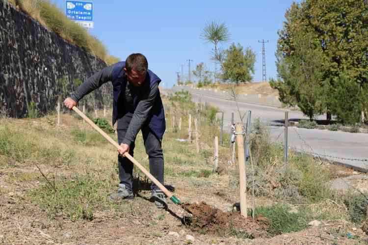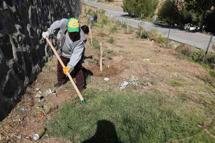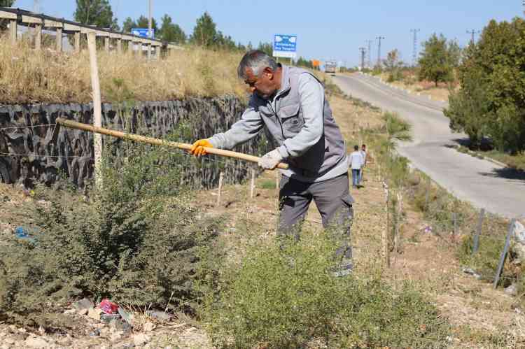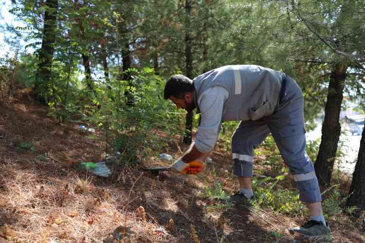 Yapılan çalışma kapsamında bölgedeki yabani otlar temizlenirken, ağaçların sağlıklı şekilde gelişebilmesi için kök çevrelerine çanak açma işlemi uygulandı.