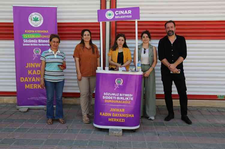 Belediyemize bağlı Jinwar Kadın Merkezi, kadına yönelik şiddete dikkat çekmek amacıyla başlatılan “Sözümüz Bitmedi, Şiddeti Birlikte Durduracağız” kampanyasını sürdürüyor.