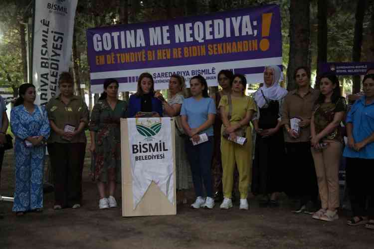 Belediyemize bağlı Jinwar Kadın Merkezi, Bismil ve Silvan Kadın Aile Hizmetleri Müdürlükleri ile ortaklaşa, kadına yönelik şiddete dikkat çekmek amacıyla “Sözümüz Bitmedi, Şiddeti Birlikte Durduracağız” kampanyası düzenledi.