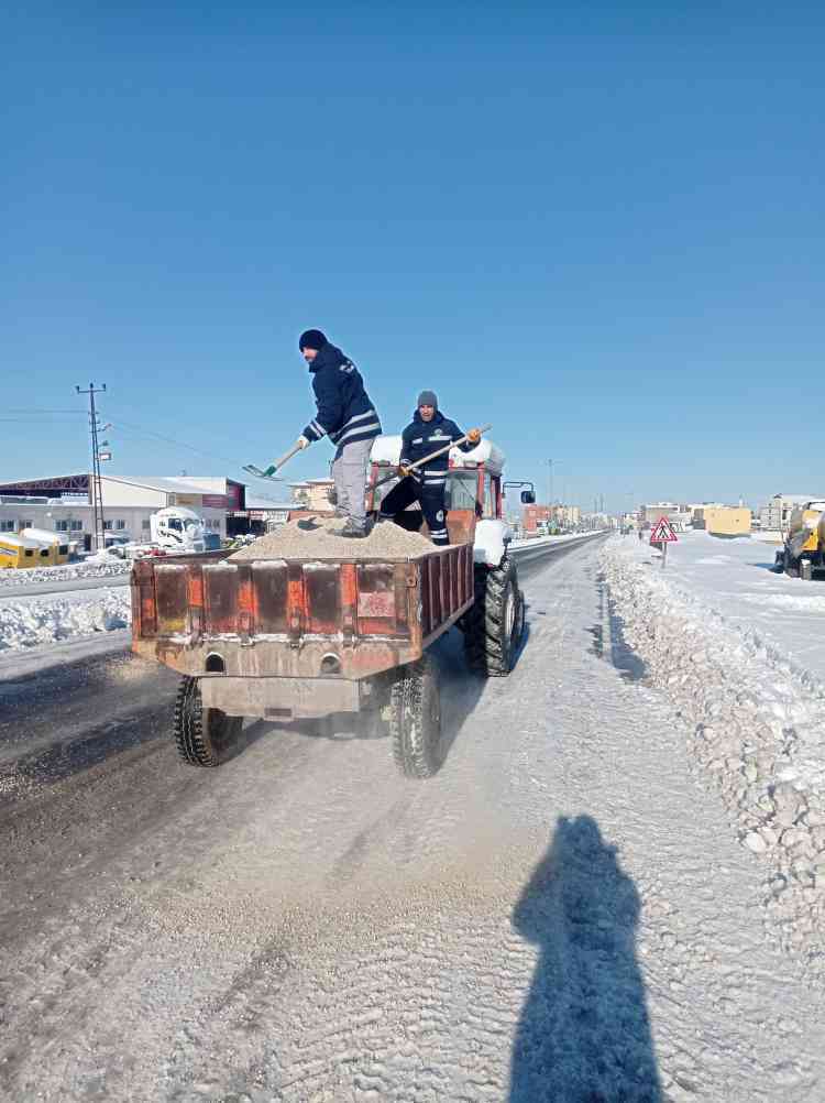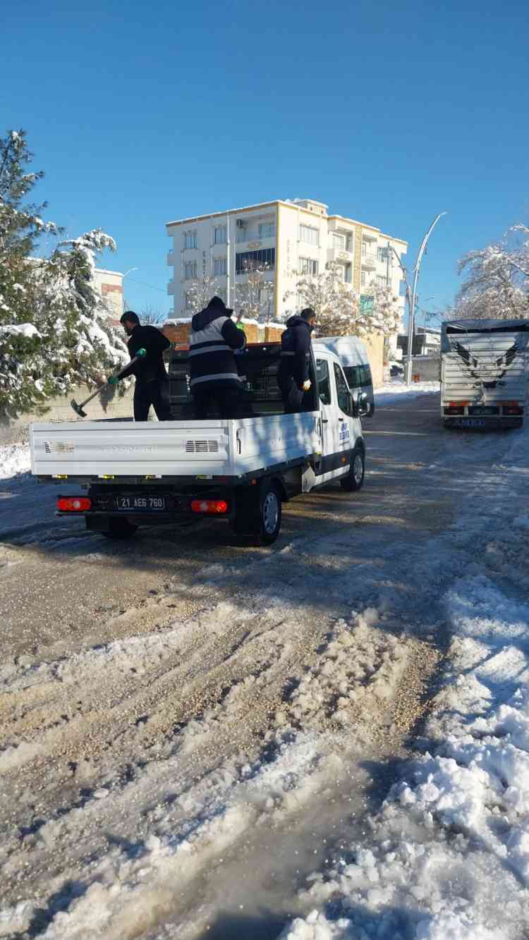Belediyemiz Fen İşleri Müdürlüğü ekipleri Mardin yolu üzerinde, 19 Mayıs caddesinde ve hastane yolunda tuzlama çalışmalarını sürdürüyor.