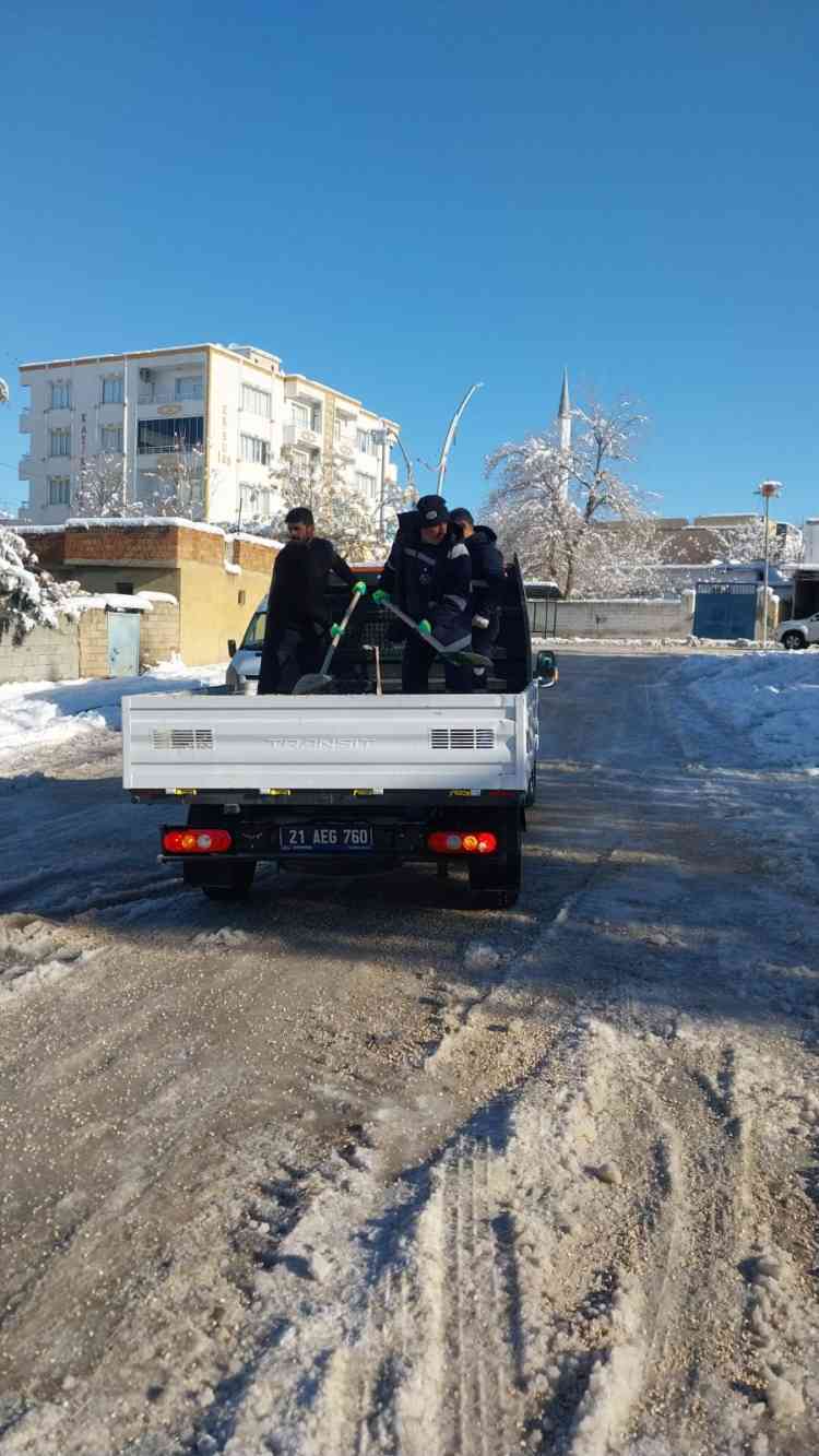 Belediyemiz Fen İşleri Müdürlüğü ekipleri Mardin yolu üzerinde, 19 Mayıs caddesinde ve hastane yolunda tuzlama çalışmalarını sürdürüyor.